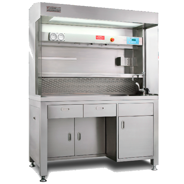 The G-Series workstation is equipped with a back downdraft ventilation system ensuring the operator is completely protected from harmful formaldehyde fumes. The G-Series can be fitted with a re-circulating exhaust system with high efficiency pottasium permanganate or carbon filters which safely neutralize the harmful fume or can be fitted for external exhaust.